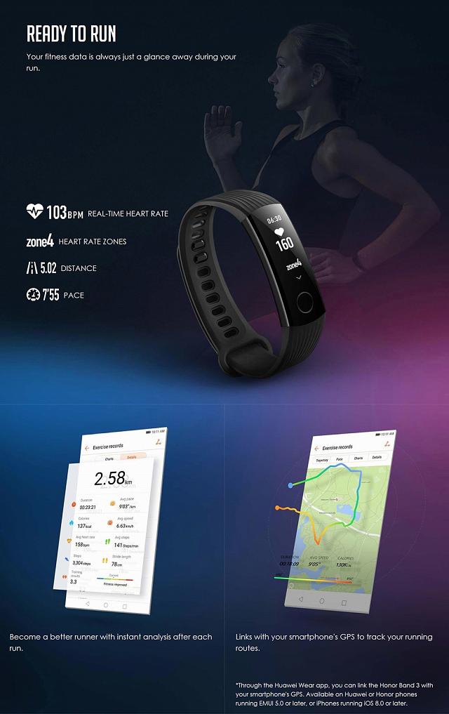 Bracelet HUAWEI Band 3 Smartband noir à 23€65