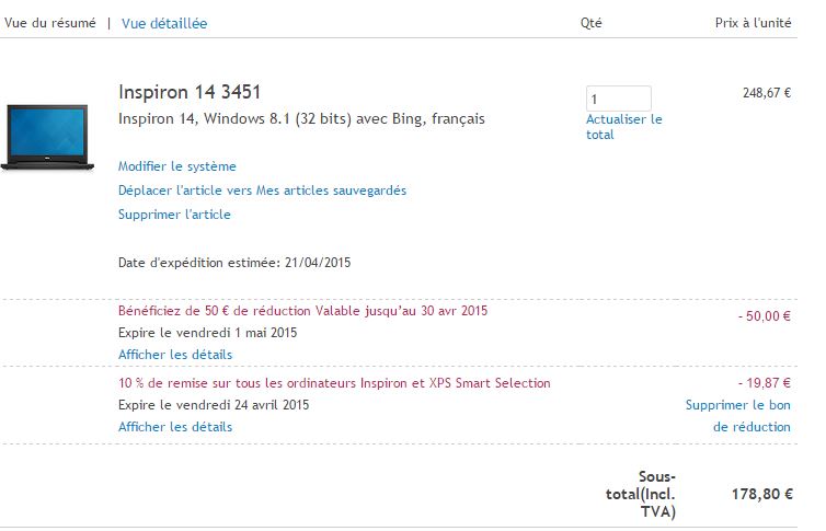 Dell propose en ce moment un cumul de réduction qui va vous permettre d’attraper un PC portable Inspiron 3000 14 pouces à 178€80 livraison comprise !