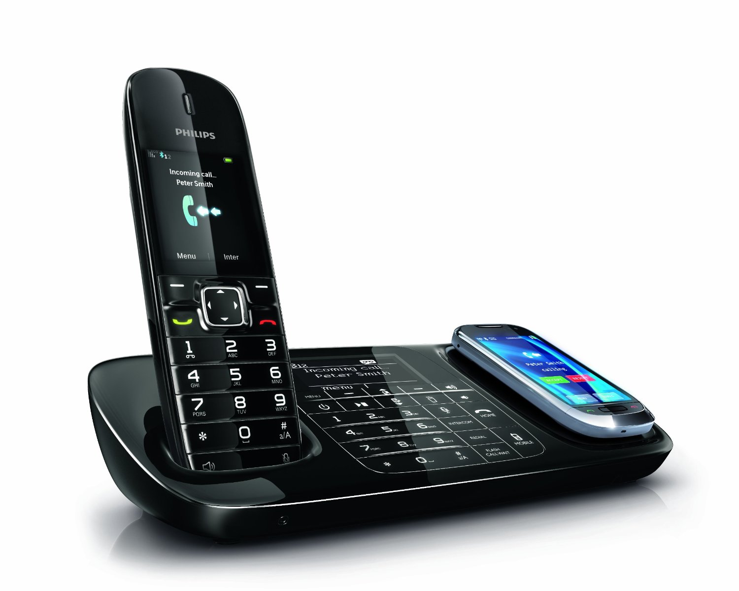 Le SMARTLINK SE8881B/38 de Philips est un téléphone-répondeur fixe sans fil. Il innove car il partage les contacts et les appels avec votre Smartphone en Bluetooth. Vous pourrez prendre des appels du mobile sur votre fixe !