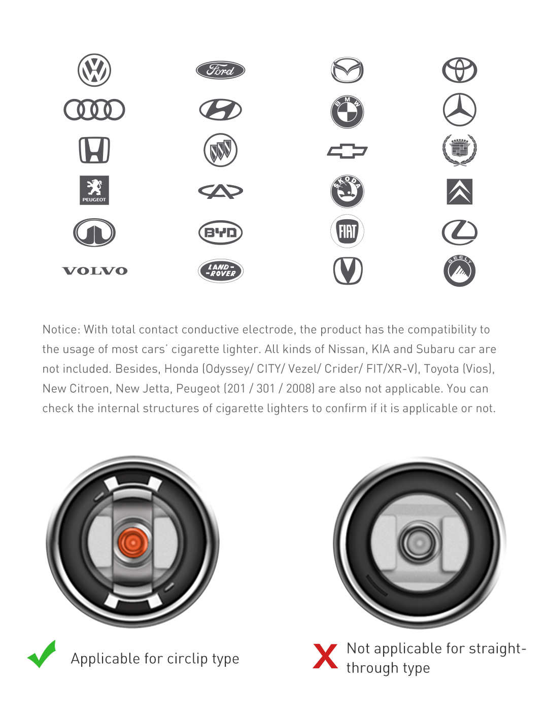 Cette adaptateur est plat à son extrémité ce qui fait qu’il n’est pas compatibles avec toutes les prises allume cigares.