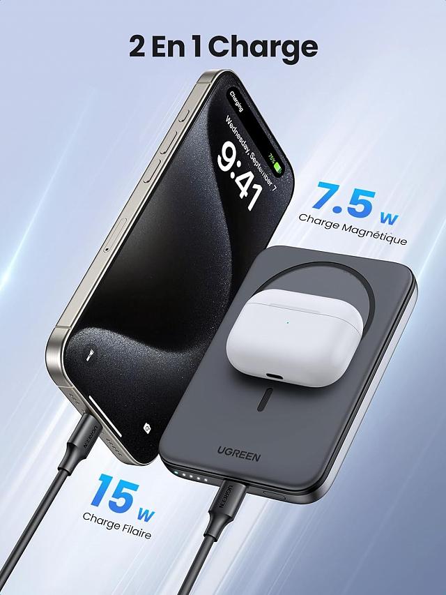 Super affaire ce jour sur Amazon qui propose une batterie externe magnétique charge par indiction de la bonne marque Ugreen au petit prix de 19,99€. Il faut cocher la case coupon 10€ pour lbtenir ce tarif.