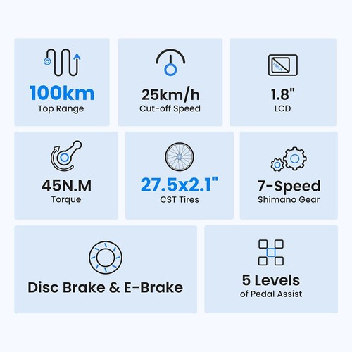 - Conformes à la règlementation française VAE (250 watts, vitesse 25km/h max, pas de mode électrique 100%).