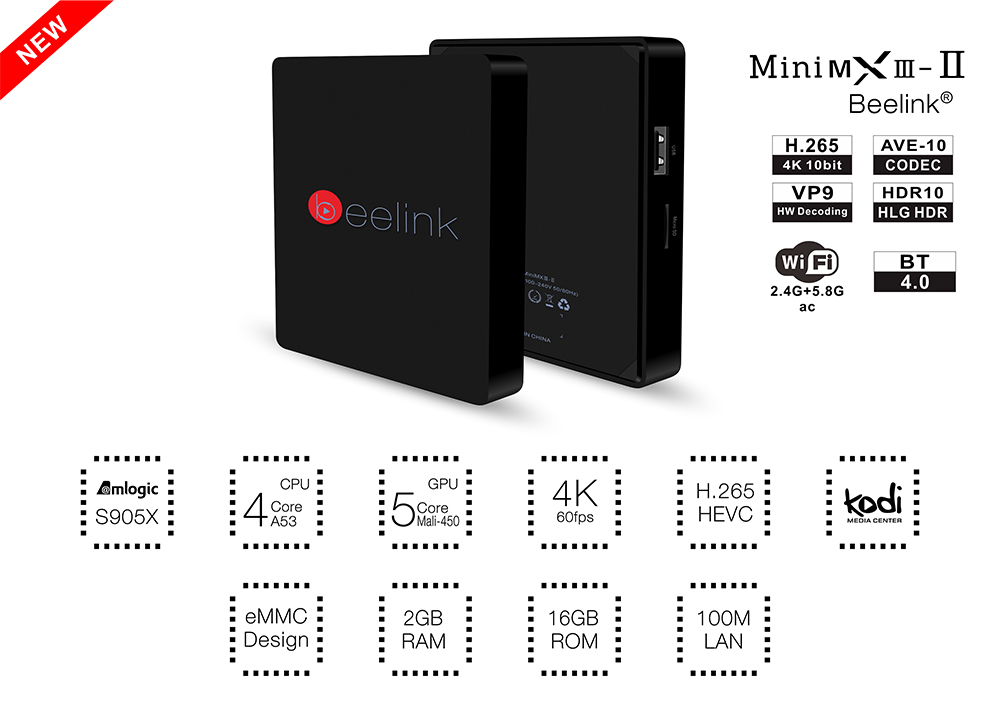 Son processeur est de dernière génération car il s’agit d’une evokutuon du Amlogic S905 , le S905X. Le S905X est maintenant à même de décoder des fichiers 4K en VP9. Le format VP9 est un codage open source promu par Google.