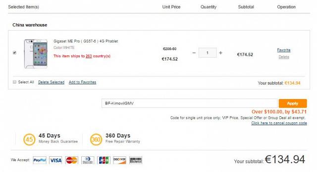 De manière assez amusante, ce n’est pas sur le marché Européen ou Allemand que l’on voit apparaître les premiers modèles à super prix mais en chine avec à cet instant une vente flash sur le Gigaset ME Pro en blanc.