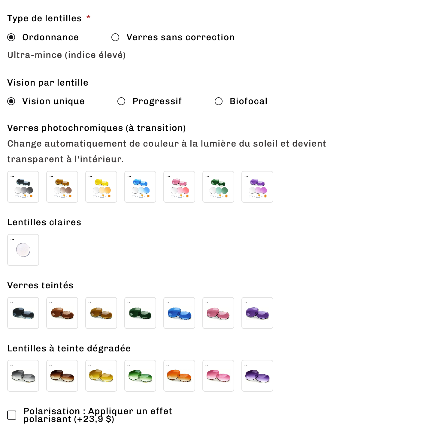 Vous avez raison après le choix entre plusieurs types de verres pour transformer vos lunettes :