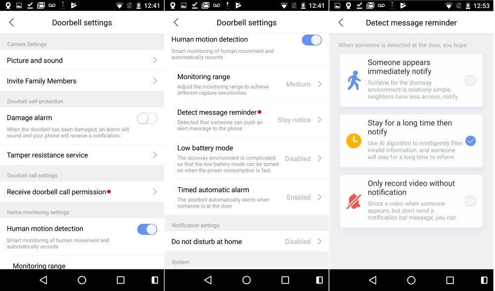 doorbell button indicating light : On peut désactiver la lumière du bouton qui s’allume quand la sonnette détecte une présence.