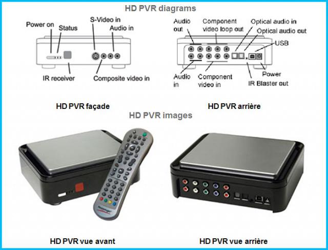 Le HD PVR est muni d’entrées composante. Il encode la vidéo en MPEG-4 AVC H.264. Côté audio il propose des entrées audio numérique coaxiale et optique. Par cette dernière entrée, l’encodage en Dolby Digital 5.1 est possible.