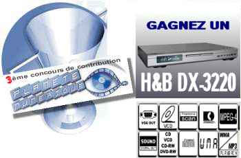 C’est reparti pour un nouveau concours de contribution qui cette fois vous permettra de gagner en premier prix ... un superbe lecteur DivX H&B DX-3220 (testé ici)
