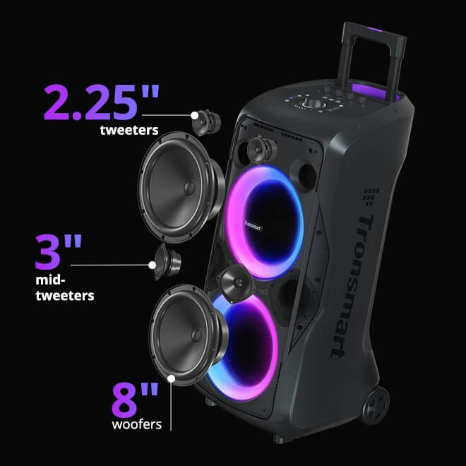 L’enceinte de soirée Tronsmart Halo 300, 240W de Puissance, lumière, Micro excellent son à 229€ et écouteurs sans fil Q1 offerts