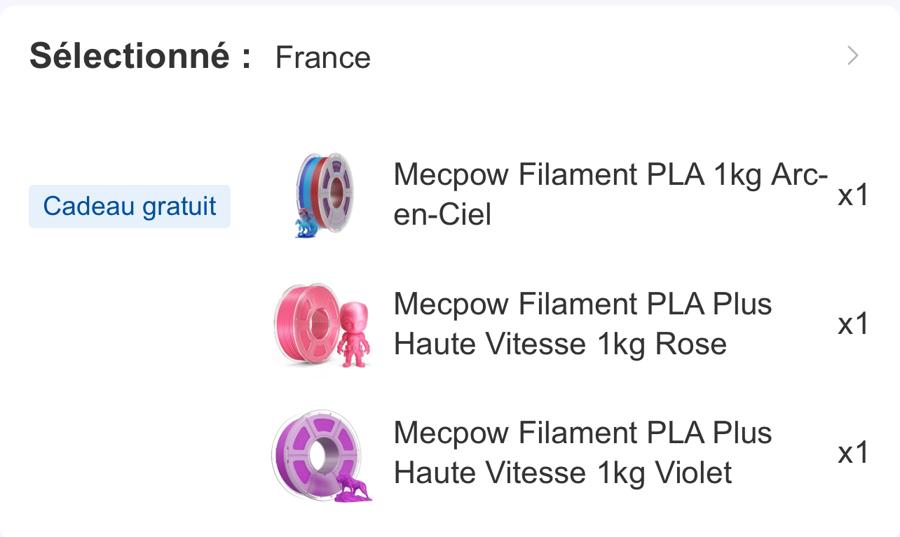 Geekbuying la propose au prix imbattable de 429€ livrée via code réduction avec de plus 1 bobines de 1kg de filament offertes.