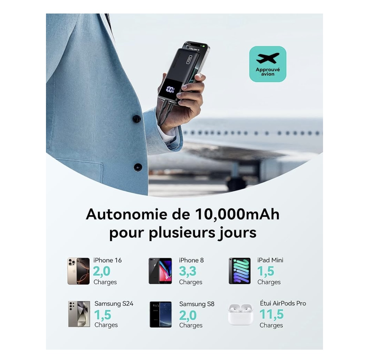 • Chargez-les tous : Contrairement à la plupart des banques d’alimentation du marché qui n’ont pas réussi à charger des appareils plus petits comme vos AirPods, montre intelligente, casque/haut-parleur Bluetooth, tracker de fitness, etc., INIU 10000 s’adapte à tous les appareils, quelle que soit leur taille. Et encore plus pratique, vous ne vous embêtez pas à changer de mode de charge pour les plus petits, il suffit de l’insérer et de partir.