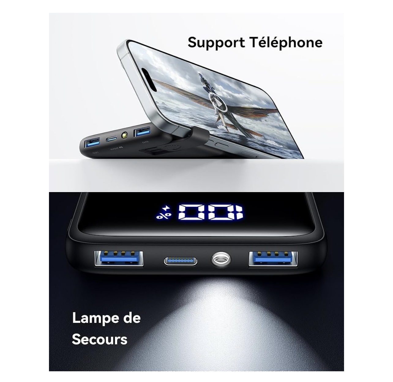 • Support de téléphone intégré breveté : Il suffit de le pousser pour obtenir une vue optimale de votre téléphone pendant la charge. Diffusez vos émissions préférées, passez des appels FaceTime à vos meilleurs amis ou prenez un selfie glamour, le tout avec les mains libres.