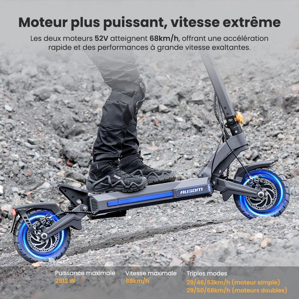 La Trottinette électrique surpuissante, Ausom DT2 Pro , double moteur 1100 W, vitesse maximale 68 km/h à 859€ Stock EU