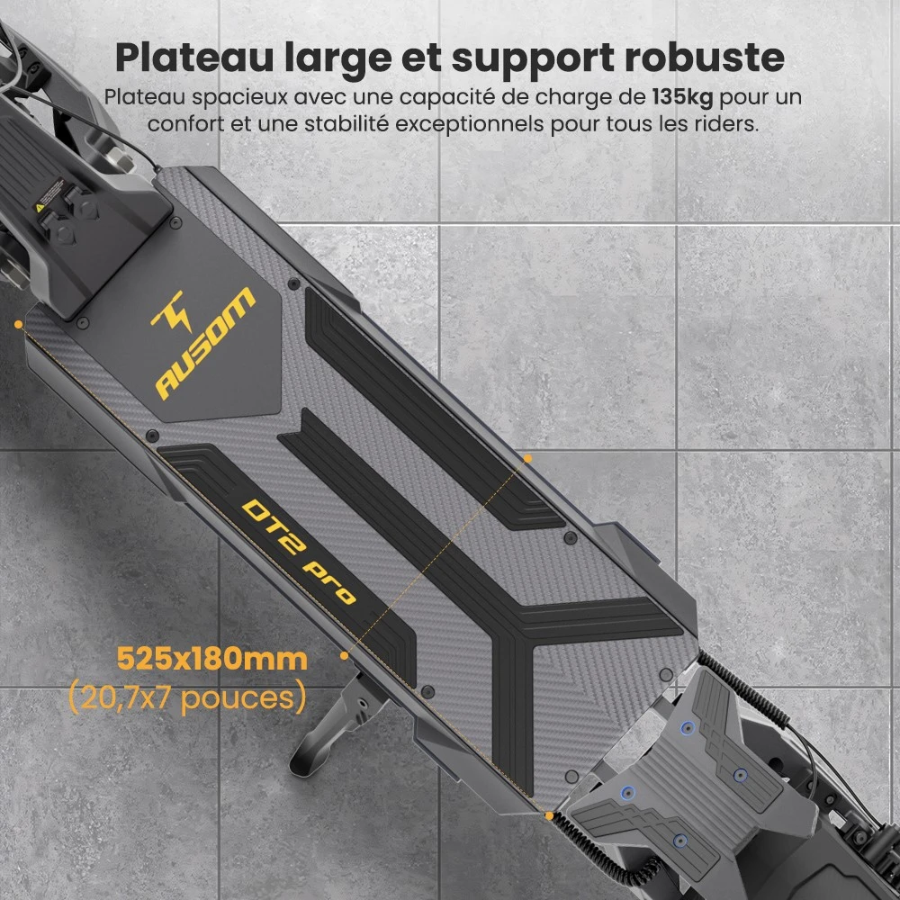 Hors route publique, la Ausom DT2 Pro permet en théorie d’atteindre 68 km/H. Ce sera bien sûr fonction du poids de l’utilisateur.