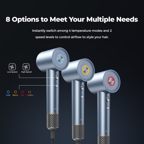 Le JIGOO H300 propose 2 vitesses et 4 niveaux de chaleur, permettant d’adapter le séchage à tous les types de cheveux et à tous les styles : brushing lisse, séchage naturel ou définition des boucles.