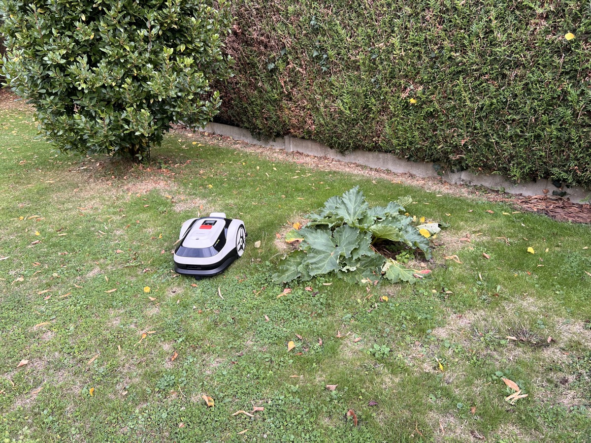Il ne peut pas tondre par exemple 500 m² en plein champ, car il n’aurait pas d’élément pour comprendre où il se situe. Pour mes tests sur un terrain de 1500 m², j’ai utilisé une simple petite bande carton sur l’herbe pour découper mon terrain.