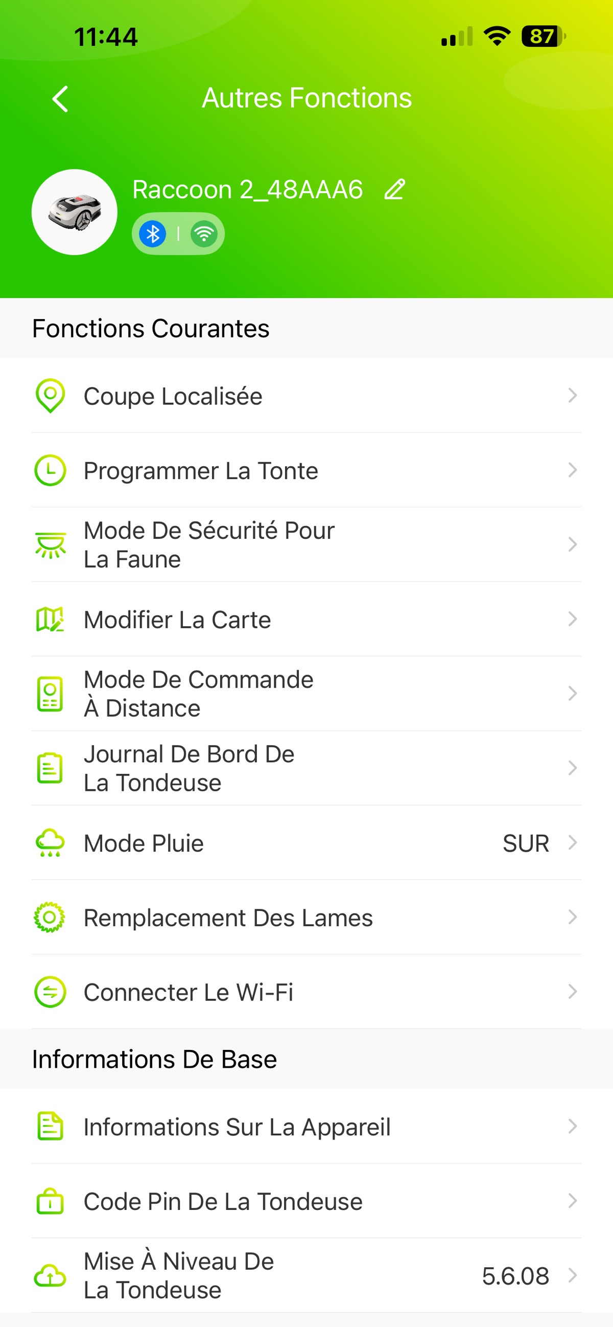 L’application mobile RobotUP est riche par ailleurs. Vous pouvez utiliser le robot en tondeuse à distance en mode télécommande. C’est adapté pour optimiser la taille des bordures de terrain. La hauteur de coupe se règle à distance. Il y a un capteur de pluie pour le faire rentrer automatiquement, etc ...