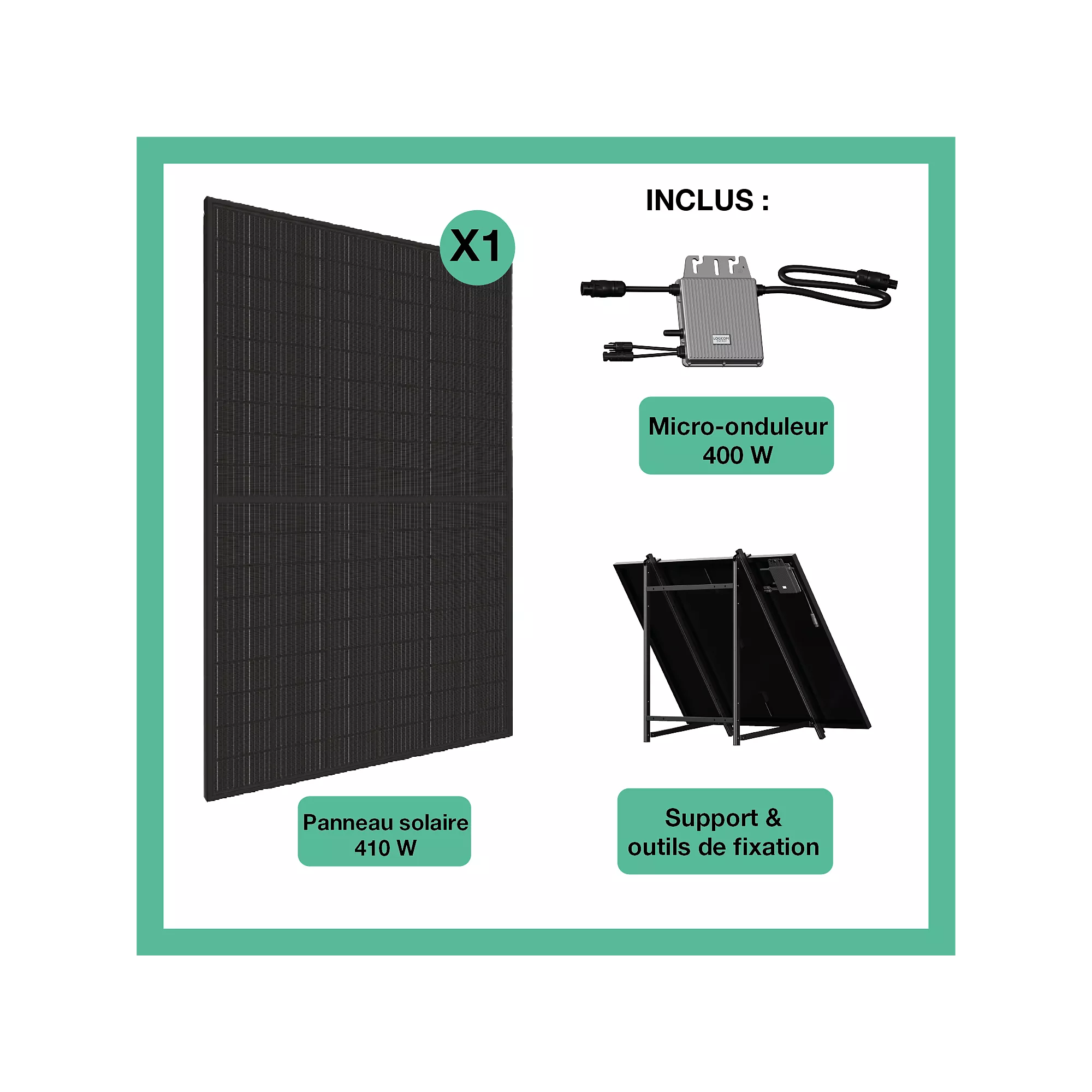 Soldes Kit solaire LOGICOM ENERGY 410w+Micro-Onduleur 400w+support + câble 10 métres à 269,40€ chez Boulanger