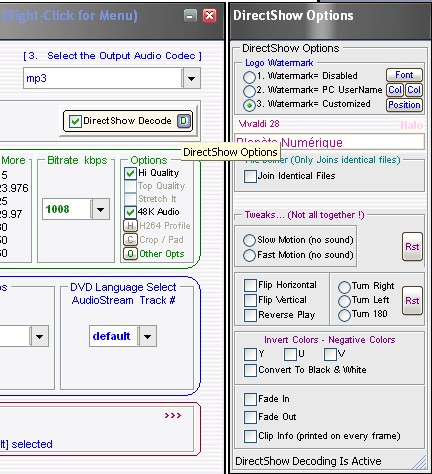 Il est cependant possible de désactiver ce décodage interne et utiliser celui de Windows en cochant la case DirectShow Decode, Directshow étant le nom de la couche de décodage Windows.
