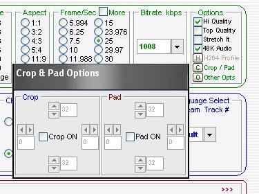 - Cliquer le petit bouton « C », Crop/Pad ouvre une nouvelle fenêtre. Ce bouton n’est cependant accessible que si l’encodeur FFMpeg est sélectionné.