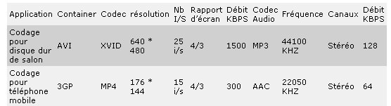 Pour la partie AAC de notre codage téléphone mobile, nous limitons la fréquence d’échantillonnage à 22050 kHz, 2 canaux (Stéréo) et le débit 64 Kpbs. Ces réglages donneront un bon rapport qualité/taille de fichier.