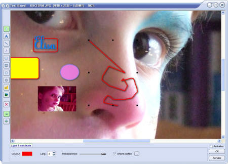 La suppression des yeux rouges se fait par la définition d’un cercle autour des yeux. Vous pouvez zoomer ou dé-zoomer grâce à la molette de votre souris.
