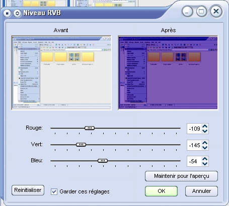 Enfin, vous pouvez modifier les niveaux RVB de votre image avec une présentation comparative entre l’image d’origine et le résultat prévu.