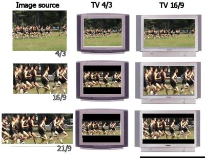 Quand il s’agit de diffuser une image d’un certain format vers un qui est moins large, des bandes noires doivent être ajoutée pour ne pas déformer l’image sur le récepteur.