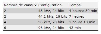 Exemple de temps de lecture en LPCM non compressé sur un DVD-5 (4,7 Go)