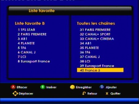 L’appareil peut enfin gérer des listes de favori pour, par exemple, regrouper les chaines TNtop dans un groupe particulier et zapper simplement de chaine en chaine.