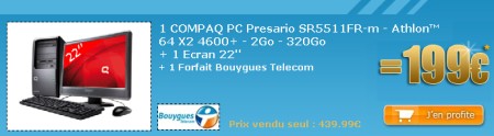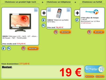 Vous verrez que certains choix sont accessibles moyennant le paiement d’un montant supérieur à 1 Euro : Par exemple, un véritable ordinateur portable Hewlett-Packard Compaq 6715s - Turion X2 TL-58 d’une valeur habituelle de 400 € est proposé pour un abonnement plus 59 € ; un bel appareil reflex Sony Alpha 200 sera proposé à 129 €, ...
