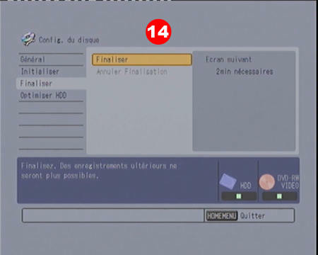 Nous passerons pour l’exemple l’étape de changement du label du dique proche de celle de changement d’un nom de titre vu précédemment pour aller directement à la phase de finalisation (cas de selection du mode VIDEO selectionné en 10).
