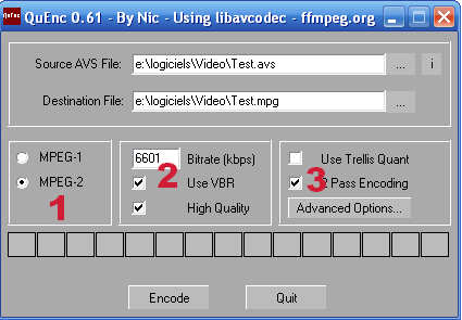 — * « Use Trellis Quant » : permet d’augmenter légèrement la qualité au détriment de la vitesse d’encodage. Je ne valide donc pas. - 2 Pass Encoding : encodage en 2 passes (recommandé)