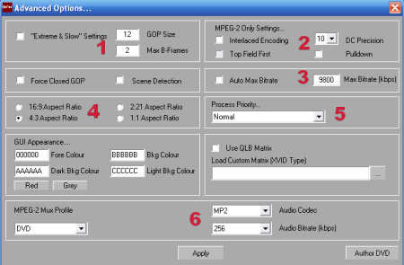 - MPEG-2 Mux Profile : laissez DVD, Codec audio : MP2 et bitrate de votre choix.