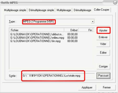 - Allez dans Fichier- -Outils Mpeg - - Coller-couper