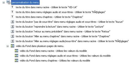 Le DVD final aura automatiquement un menu de sélection audio avec un texte associé à chaque piste ainsi qu’une piste par défaut. Autant de paramètre que vous pouvez simplement spécifier dans l’arbre.