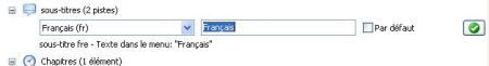 Tout comme la gestion multi audio, le DVD final aura donc un menu de sélection sous-titre avec un texte associé à chaque piste ainsi qu’une piste par défaut le tout paramétré directement dans l’arbre.