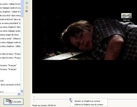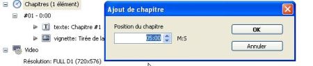 ConvertXtoDVD génère automatiquement ceux-ci mais vous pourrez au besoin ajouter un nouveau chapitre en indiquant sa position temporelle.