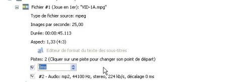 Vous pourrez appliquer de même ce type de décalage sur une piste sous-titre au besoin en choisissant la piste en question.
