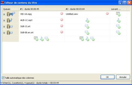 Nous arrivons à la fin de notre arborescence avec le choix Liste des fichiers.Y sont listée les pistes vidéo, audio et sous-titres ajoutées précédemment.