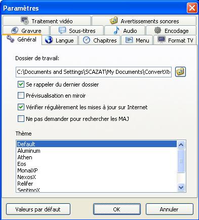 ConvertXtoDVD propose tout naturellement un ensemble de paramétrage qui agissent pour beaucoup comme choix par défaut. .