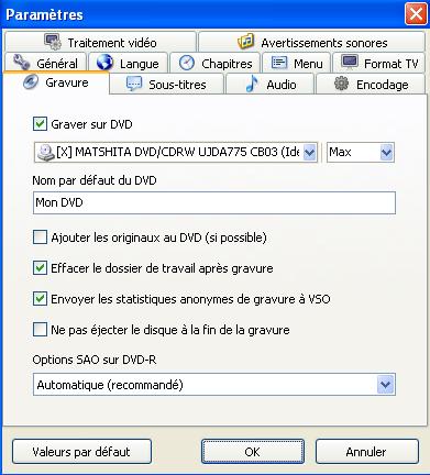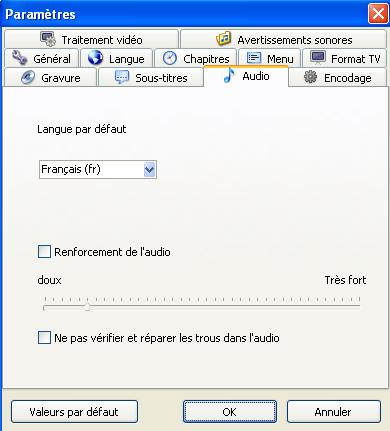 Le dernier choix intéressant porte sur l’audio. Vous pourrez rehausser le volume de l’écoute si celui-ci s’avère trop faible sur le disque origine.