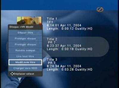 Il est possible de supprimer un enregistrement, le renommer ou encore de le copier sur un disque DVD.