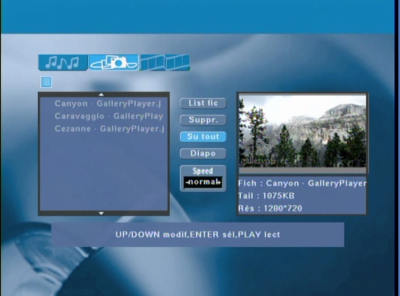 Une fois inséré un disque avec des fichier vidéo, un navigateur de fichier apparaît. Il permet de choisir les fichiers audio/image ou vidéo.