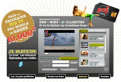 En ce moment, la société NRJ Mobile organize un concours. Le principe est de réaliser une publicité sur le modèle de celles qui passent actuellement à la télévision (notamment sur W9) sur le thème : « Il va te falloir un troisième bras ! ».
