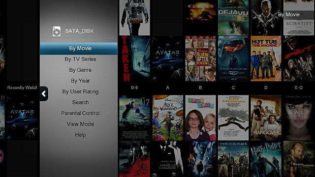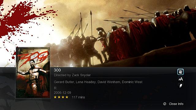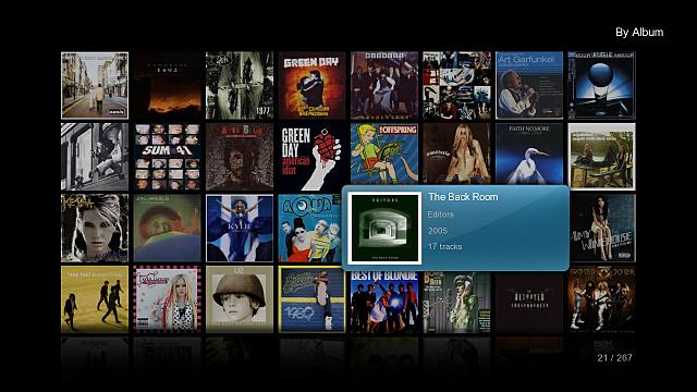 Côté vidéo, les données d’un film sont directement récupérées via Internet et affichées sous la forme d’un mur avec capacité de recherche, classement (par genre, date, ...) .