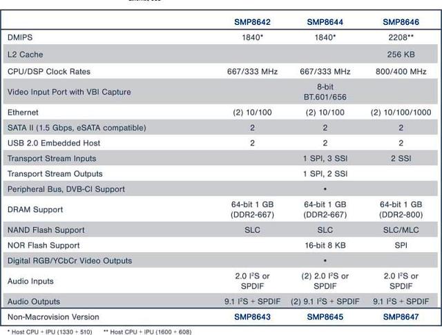 Bien sur tout d’abord le circuit de décodage. Fidèle à Sigma Design, Syabas passe au SMP8647, 800 MhZ et 256 kbit de mémoire cache de niveau 2.