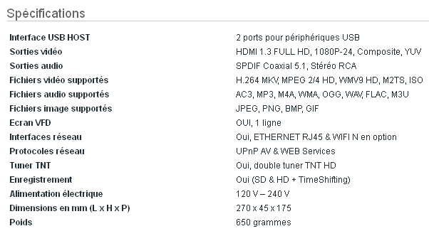 Pour ce qui est de l’avis global sur le produit, il semblerait que les capacités de décodage soient assez intéressantes. Sur le papier, la TwinBox supporte ces différents formats : H.264 MKV, MPEG 2/4 HD, WMV9 HD, M2TS, ISO. Reste à savoir ce que veut dire ISO, si ce sont des ISO DVD ou bien Blu-Ray ?