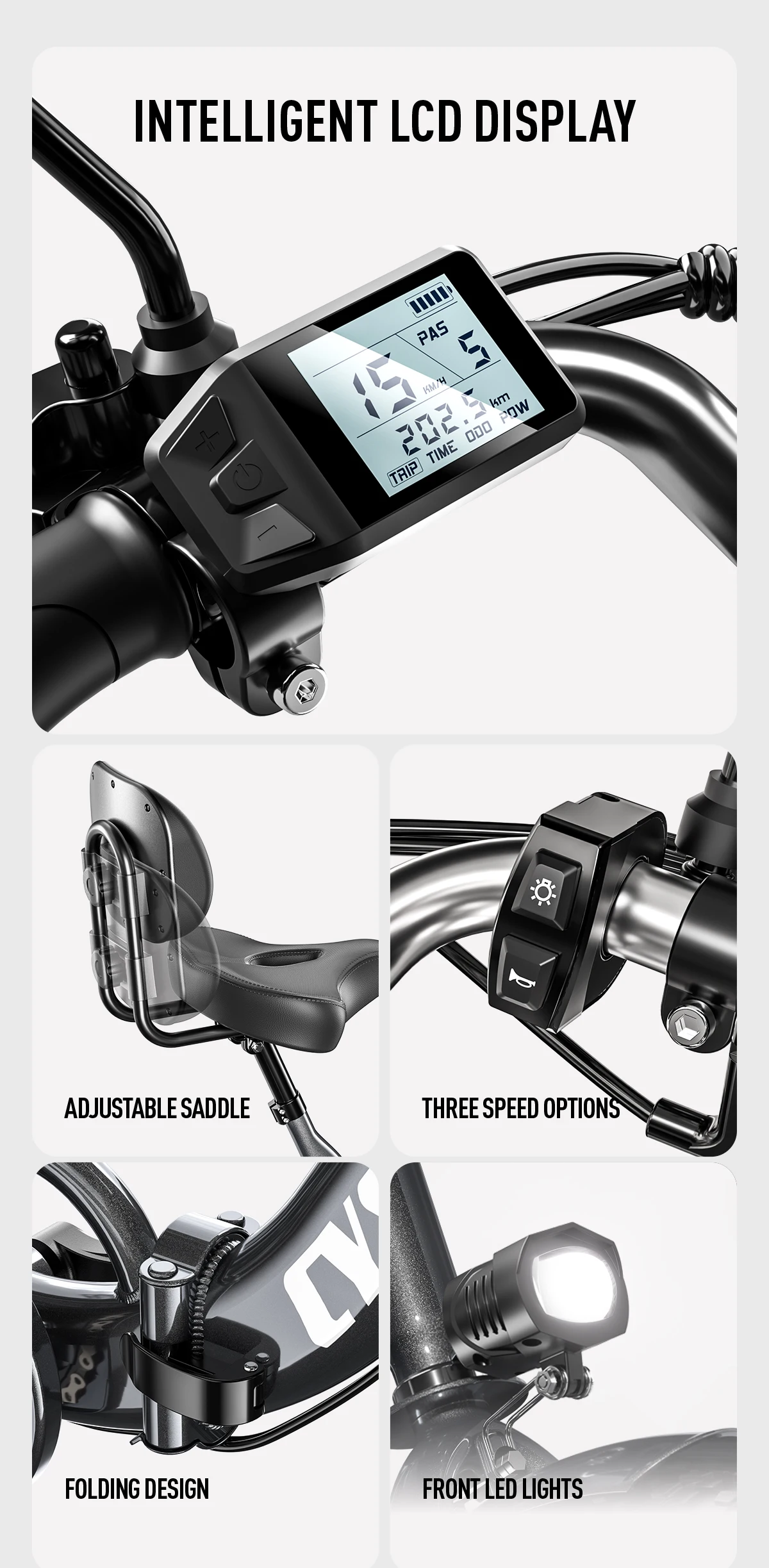 - Écran LCD clair et simple d’utilisation pour surveiller vitesse et batterie