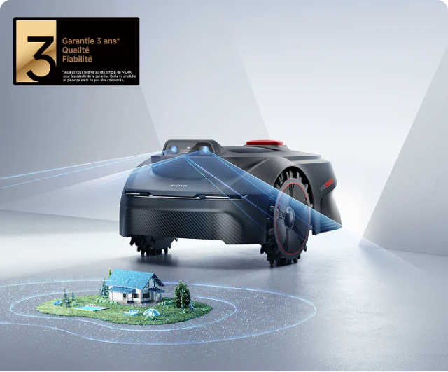 Ce modèle combine LiDAR et caméra HDR Full HD avec IA pour maîtriser son environnement, sans câble périmétrique ni antenne. La gamme peut gravir des pentes jusqu’à 45 % et surtout mieux gérer les bordures grâce à un système de coupe intégré proche des limites.
